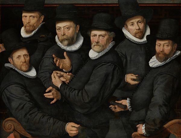 Pieter van Anraedt painted this group portrait of the regents of the Oudezijds House in 1675. Their black attire, stark against their white collars, signifies their sober duty. Papers in hand, they are arbiters of charity, embodiments of civic responsibility. The table acts as a stage, and the regents' hands, some holding papers, others gesturing, are powerful symbols of their authority. Hands, these instruments of action and creation, remind us of the ancient Roman tradition of displaying hands in public to symbolize power. Consider, too, the hand of God in Michelangelo’s Creation of Adam, a gesture of life and command. Here, though, the gestures are more subdued, reflecting the solemnity of their role. The motif of the hand, laden with symbolism, has shifted from divine power to civic governance. It speaks to our collective memory, a subconscious recognition of the human capacity to shape our world, for better or worse, echoing through centuries of art.