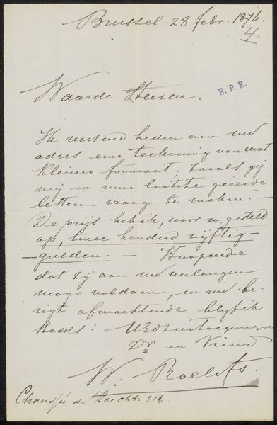 This letter was created by Marinus van der Maarel, at an unknown date, using paper and ink. It’s a very direct kind of artifact, just ink applied to paper. But consider what is implied in this action. The making of paper itself is no small thing. It involves breaking down plant fibers, processing them, and then pressing them into sheets. These sheets, as we see here, become a blank canvas for communication. The ink, another complex recipe, allows for the transfer of thought into a durable, readable form. The handwriting also tells us something. The controlled, elegant script speaks to a culture of penmanship, where handwriting was a valued skill, a direct reflection of the writer’s character and education. So even in something as simple as a handwritten letter, we see layers of material, process, and social context all intertwined. These should all be considered when thinking about the cultural value of this artwork.