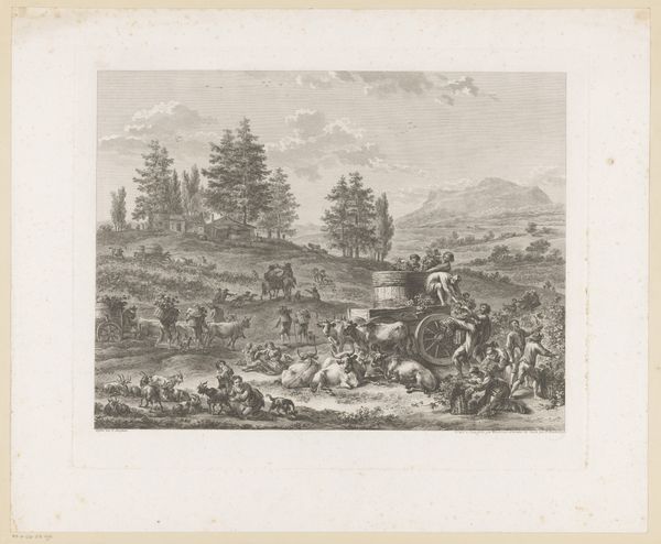 Jean Lepautre etched "Herders met kudde schapen in een kustlandschap" in the seventeenth century, during a period of immense social change in the Netherlands. Here, we see an idyllic scene of rural life; shepherds guide their flock across a coastal landscape, while in the distance, a bustling port city thrives. This image creates meaning through visual codes, historical associations and cultural references. The Dutch Golden Age was a time of economic prosperity fueled by maritime trade, and such landscapes reflected a national pride in the land. Yet, this was also a period marked by the rise of a merchant class and growing social inequality. Works like this present a sanitized version of rural life, intentionally evoking classical pastoral ideals, perhaps as a subtle commentary on the changing social structures of the time. By looking at estate records, economic histories, and other cultural artifacts from the period, we can better understand how the artwork reflects the social conditions of its time. The meaning of art is always contingent on the social and institutional context in which it was made and received.