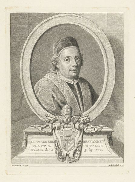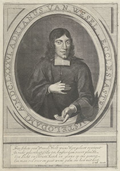 This is Jacob Houbraken's portrait of Geoffrey Chaucer, made in the eighteenth century and now residing at the Rijksmuseum. It's an engraving, a printmaking process where an image is incised into a plate, and then used to create multiple impressions. Think of the labor involved: the skilled hand of the engraver meticulously carving lines to capture Chaucer's likeness and the surrounding details. The material of the copper plate itself is crucial; its hardness allows for precise, repeatable marks. And the very nature of printmaking implies distribution. Engravings like this played a vital role in disseminating knowledge and imagery in the 1700s. It made art and information accessible to a broader audience during the rise of a commercialized society. The social context is key here. This isn't just a portrait; it's a product of its time, reflecting the growing importance of reproduction and the democratization of art. This engraving bridges the gap between craftsmanship, artistry, and the evolving landscape of labor and consumption.