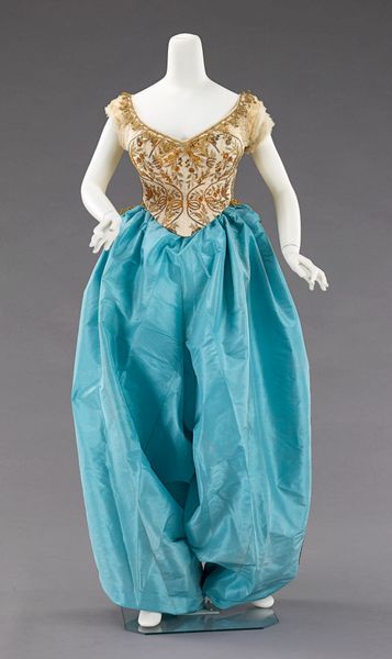 Curator: Right, let's talk about this breathtaking ball gown from the House of Worth, crafted somewhere between 1898 and 1900. It’s currently held in the collection of the Metropolitan Museum of Art. Editor: Wow. Scarlet fever, but in a good way! It’s such a vibrant red, like a poppy in a field, but so formal… dramatic, really. It’s the kind of dress that demands attention. What's it made of? Curator: Mostly textile. But, really, it’s more about the connotations than the literal fibres, isn’t it? This period saw rapid shifts in understandings of femininity, consumer culture, and the burgeoning department store—the House of Worth being a key player, dressing European royalty, which held immense sway. The emphasis was on luxurious embellishment and dramatic silhouettes. Editor: Embellishment…right. But all I see is the red. It almost feels… revolutionary, daring, like she’s breaking out of something even in the 19th century. Curator: I appreciate that read, and there's an interesting tension. While this form embodied constraint—emphasizing the tiny waist achieved through corsetry and signaling status through impracticality—we should not forget Worth simultaneously provided their wealthy patrons with the very means to flaunt their power and distinction. Editor: Still... there's something fiercely alive in that color. Makes me think, what's more powerful: being trapped in a beautiful cage, or being so brilliantly dressed you are noticed above all others, and everyone watches you anyway? It feels very purposeful in a way only the wealthy can achieve, and everyone else resents. Curator: Indeed, this contrast highlights broader debates about visibility, power, and agency. The dress as an artifact sparks dialogue about what has shifted, what endures, in constructions of beauty and class. It asks us, really, to assess the weight and worth of garments in the grand tapestry of social history. Editor: Makes me think I want to have a party now. Thanks, history! I'm feeling inspired... maybe scarlet isn't a fever dream, maybe it's a damn manifesto.