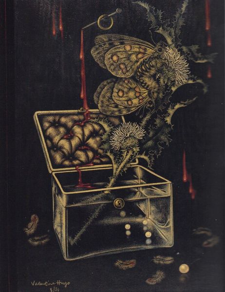 Editor: Here we have "Trophies of the Hunt" by Alexander Pope, painted in 1905, using oil paint. It strikes me as a pretty traditional composition, but something about the darkness makes it almost macabre. What do you see in this piece? Curator: What I see immediately is a celebration, and simultaneously a visual record, of power dynamics. The composition utilizes the traditional Vanitas symbolism, reminding us of the transient nature of life, yet it goes further. Notice how the hunting implements are arranged almost as heraldry; what do they evoke for you? Editor: Hmm, I see your point about heraldry, almost like a family crest but made of dead animals and hunting tools. It's a bit unsettling! I guess that's part of what I was finding macabre about it. The darkness highlights the lifelessness, doesn't it? Curator: Exactly. And it’s not simply about death, but dominion. Hunting has long been associated with status. Guns, antlers, dead birds…these become potent symbols, almost ritualistic. This painting is, in a sense, performing cultural memory – evoking historical associations between hunting, power, and masculinity. Does that shift your initial perception? Editor: It does. Thinking about the history makes the painting more than just a still life. It feels more… loaded. I wouldn’t have picked up on those layers without your perspective. Curator: And consider the act of 'trophy' display itself; how cultures mark and remember. Each object possesses layers of historical and psychological meaning that resonate even now. Editor: So, it’s not just a depiction, but almost an artifact of cultural values and their evolution over time? I will keep that in mind. Thanks!