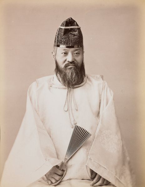 Raimund von Stillfried captured this hand-colored albumen silver print, titled 'Vieux mendiant,' sometime in the late 19th century. The long white beard of the elderly man is the dominant symbol here. It speaks volumes about wisdom, experience, and the passage of time. The beard motif is ancient, reappearing across cultures as a marker of status and authority. Think of the venerable philosophers of ancient Greece, or the patriarchal figures in religious art, their beards signaling profound knowledge. Yet, here, the context shifts. The man’s worn clothing and humble posture contrast sharply with the traditional associations of power. The beard, once a symbol of strength, becomes tinged with vulnerability, reflecting the weight of years and the trials of life. This interplay reminds us that symbols are never fixed. They evolve, transform, and resurface in different guises, carrying echoes of the past while acquiring new meanings. This image engages us on a subconscious level, stirring deep-seated emotions connected to aging, respect, and the cyclical nature of existence.