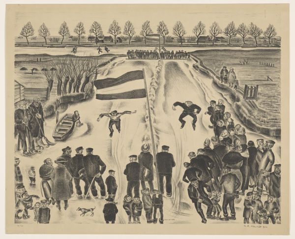 Editor: This vibrant print, created around 1861 by Utagawa Yoshikazu, is titled “America”: A Steamship in Transit. It's currently housed at the Metropolitan Museum of Art. The way Yoshikazu depicted this steamship and the Western attire of the figures gives the image a certain sense of fantasy and cultural exchange. How do you interpret this work within that context? Curator: That's beautifully observed! It feels almost dreamlike, doesn't it? Like a staged play. What strikes me is the Japanese artist's imaginative interpretation of Western culture during the late Edo period. It's less about accuracy, and more about capturing the "idea" of America. Look at how the artist rendered the American flag and fashion—filtered through a distinctly Japanese lens, revealing curiosity and perhaps a touch of whimsicality. It makes me wonder, what did 'America' *mean* to Yoshikazu, and to the Japanese public seeing this print? Do you see that playful reinterpretation? Editor: Absolutely! The figures almost look like dolls, and the ship feels like a theatrical set piece rather than a functional vessel. Curator: Precisely! Think about ukiyo-e's traditional focus on beauty, nature, and fleeting moments. By depicting this "foreign" subject, Yoshikazu expands that tradition, showing how cultural exchange itself can be a captivating subject. It's not just a snapshot of a steamship; it's a reflection of Japan's evolving relationship with the world, full of wonder and a delightful dash of creative license. What is your takeaway? Editor: I’d never thought about how a print like this could offer insights into not just the subject being depicted, but the culture that created it, too. The charm of the piece feels less about realism and more about an imagined other. Curator: Exactly, it is more about imagination than reality!