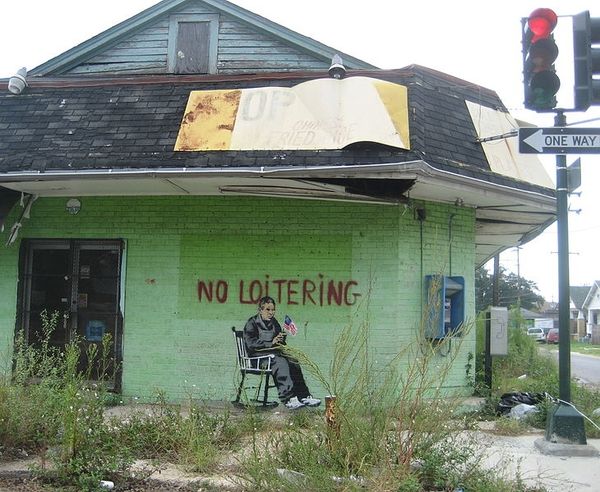 This photograph, Untitled [New Orleans and the Gulf Coast, 2005], was shot by Richard Misrach. It speaks to an idea about the world, that images are never truly objective, but made through selection. The words "I AM HERE I HAVE A GUN" are sprayed in red paint onto a wooden wall. Misrach has chosen to focus on these words against the wooden backdrop of the boarded-up building. The contrast between the raw, uncut wood and the bright red spray paint creates an interesting push and pull for me. It's like a punch in the gut; a raw and desperate message in a chaotic situation. Those words seem to shout out from the silence of the image. This reminds me of the work of Martha Rosler, who also addresses the themes of war and social injustice, with the use of text, image and appropriation. Art isn't just about aesthetics; it's about raising questions.