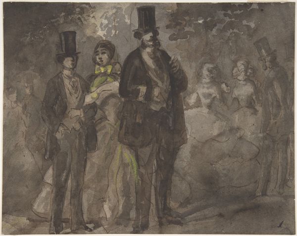 Constantin Guys made this watercolor sketch, entitled *Leaving the Theater*, sometime in the mid-19th century. Its loose brushstrokes and informal composition are characteristic of his distinctive style. Guys, who worked as an illustrator for much of his career, found his subject matter in the social life of the Second Empire in France. As a sketch of people caught in a moment of leisure, the work captures an emerging modern sensibility. Theaters were a public stage where social norms were not only performed but also contested. The clothing and adornments of the figures in this image tell us about the complex social codes of the time. The women’s dresses, for example, signal their class and status. The artist’s attention to these minute details reveals a fascination with social structures. Art historians can piece together a richer understanding of the artwork through careful study of the culture that produced it. By researching theater programs, fashion plates, and social commentaries from the period, we can learn about the social rituals represented here. Ultimately, it is the task of the historian to contextualize the work within its historical milieu.