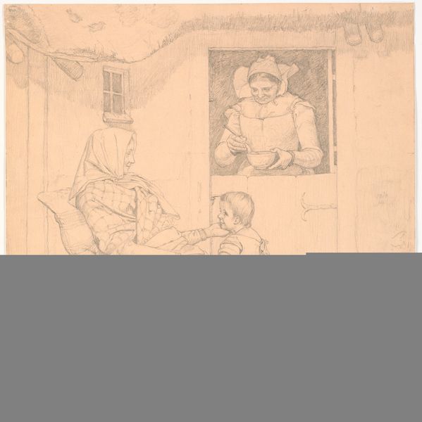 Editor: This photograph, "Untitled (woman and baby on chair)" by Lucian and Mary Brown, features a mother and child, with what appears to be a floral offering. There's a compelling domesticity here. What do you see in this piece? Curator: The image reads to me as a complex negotiation of gender roles within the domestic space. The woman is literally the support for the child, hinting at a social structure where she is the foundation. Editor: But the flowers? Does that change the power dynamic? Curator: Perhaps. Consider the presentation of flowers – is it an act of love, or a subtle reminder of her confinement to the domestic sphere? It raises questions about agency and societal expectations. Editor: I hadn’t considered that interpretation. It’s definitely food for thought. Curator: Exactly! This photograph invites us to reflect on the subtle, often unseen forces shaping our understanding of family and womanhood.