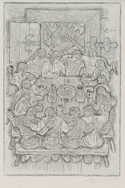Hans Christian Hansen captured Kong Hans og Dronning Christines gravmæle, the tomb of King Hans and Queen Christine, in this detailed drawing. The royal couple is depicted with their child, framed by intricate heraldry. The shields surrounding the central figures speak of lineage, power, and identity, acting as visual emblems of the family's status. Notice the orb held by the king; a symbol of sovereign authority, it's an ancient motif, echoing through centuries, from Roman emperors to medieval monarchs. This symbol transcends mere representation; it embodies the weight of governance and the divine right to rule. Consider how such symbols recur and transform across epochs. The orb, for instance, appears in countless contexts, each time subtly altered by cultural and political forces. The collective memory imbues these symbols with a power that engages us on a subconscious level. This image, charged with historical and symbolic weight, invites us to contemplate the cyclical nature of power and memory.