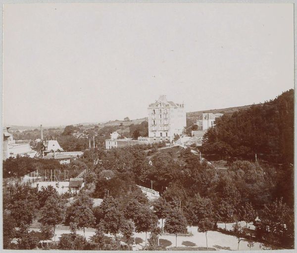 Curator: Gazing at this vista, my first feeling is one of tranquility, despite the obvious human construction involved. It’s as if the town grows organically out of the very rock. Editor: I find the quiet beauty resonates strongly, and it fits comfortably with my understanding of cultural memories related to southern France. What draws your attention most immediately? Curator: For me, it’s how the architect—or the city planner, I suppose—negotiated the landscape. The buildings seem almost secondary to the natural topography. Is that relationship key for you? Editor: Absolutely. This is a photograph from 1903 entitled "Gezicht op Tourrettes-lès-Vence," which translates from the Dutch to "View of Tourrettes-lès-Vence." And knowing that, the city plan seems more clearly deliberate and less about blending. It feels very intentional and in response to its placement on the top of what looks to be a fairly defensible rocky cliff face. It also offers the symbolic reassurance of permanence in a time of social upheaval. Curator: A defensible position—and a high vantage point, too. A strong image to evoke control, then. It also feels staged because the building materials and the rocks have very similar tones, and almost seems designed to melt into the surroundings and reflect this sense of protection. What could this mean culturally? Editor: Well, one might easily argue that the similarity reflects building with local materials. Stone would be practical but also contribute to the overarching aesthetics we see. The strategic importance also cannot be dismissed because of its physical presence over time and relationship to broader socio-political tensions present then as now. It's fascinating how it all accumulates. Curator: The perspective here feels almost omniscient. I am drawn into its ability to transcend history and place in equal measure. I want to stay a while with this image. Editor: Agreed, its depiction evokes a timeless quality of human endeavour intertwined with the environment. Something that lingers long after we move on.
