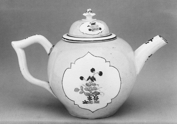 This teapot was made by Meissen Manufactory. Observe the teapot's bulbous form; a perfect study in porcelain, embellished with stylized floral patterns. The handle and spout extend asymmetrically from this central mass. Each element, from the curved spout ending in an almost avian form, to the ornate handle mimicking organic growth, is deliberately placed to offset yet complement the sphere of the main body. The monochrome palette, which highlights the meticulous detail in the hand-painted floral designs, suggests a carefully constructed interplay between positive and negative space. The flowers, scattered across the surface, animate the porcelain and transform a functional object into a piece that flirts with three-dimensionality. Note the meticulous craftsmanship, the tension between utility and ornament, that elevates the teapot from a mere object to a discourse on form and function. This piece invites us to consider how everyday objects can be imbued with artistic and philosophical inquiry, challenging our perceptions of value and purpose in art.