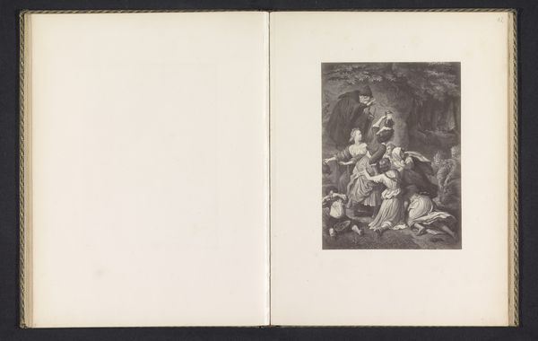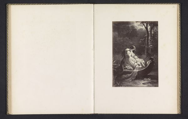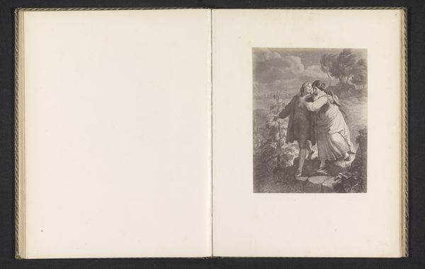 Curator: This albumen print, dating from before 1874, reproduces a painting by Edwin Henry Landseer showing two young girls with dogs in a landscape. It's quite idyllic. What strikes you most about it? Editor: The light. It's so carefully staged, isn’t it? Spotlit children and attentive dogs give this print an almost theatrical atmosphere. The way the composition leads our eyes invites us to focus on their apparent innocence, or perhaps naiveté. Curator: I'm drawn to the cultural associations of childhood and animals in this scene. Dogs, particularly, have long been symbols of loyalty, innocence, and guardianship. Paired with young girls, who themselves often represent purity and potential, it speaks to societal ideals of the time, perhaps a desire for simple virtues. Editor: Do you think that is why Landseer focuses on the texture of everything, from the children’s ruffled dresses to the soft fur of the dogs, perhaps? Each of those fine details emphasizes their visual presence, in the sense that each is being meticulously presented to us, demanding that we reflect. Curator: Absolutely, and those details also play into established symbols and emotional cues, creating layers of meaning that connect with prevailing cultural memories. The image speaks to established archetypes and reinforces particular social values. Consider, for example, the types of dogs selected - loyal breeds adding weight to the ideas around childhood safety and gentility. Editor: Do you see something deeper at play in the symmetry of how Landseer has arranged the subjects? Are these visual queues symbolic beyond social conventions of class and security? Curator: The symmetrical composition gives balance, yet subtly emphasizes a power dynamic, as the standing girl is brighter, larger than the sitting girl and dogs. Their arrangement isn't just pleasing, it carries visual cues related to societal expectations. The innocence you mentioned might not be so naïve, after all. Editor: It’s as if the artist carefully orchestrates every facet of the visual elements to guide the viewer’s perception of social norms. An interesting view. Curator: Yes, looking deeper reveals complexities beyond simple charm. Editor: Thank you. It gives the photograph something for me to explore in depth next time I pass through here.