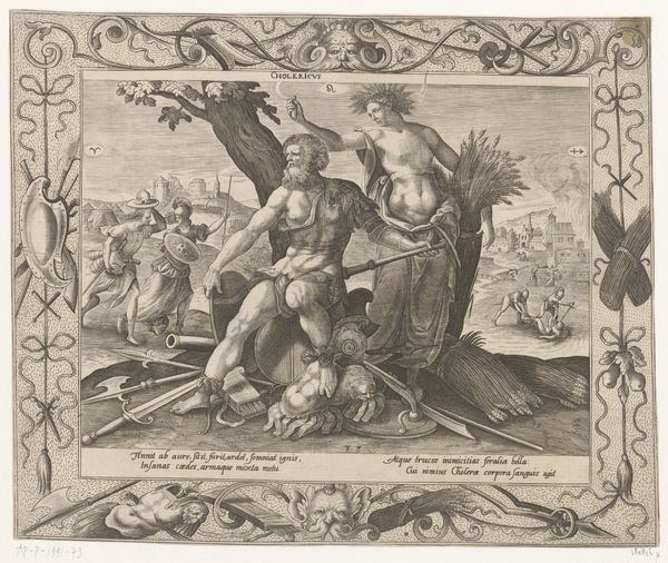 Hieronymus Lederer's "Sanguinisch" presents us with a vivid depiction of the sanguine temperament, likely crafted in the late 16th or early 17th century. Dominating the scene are figures reveling in earthly pleasures, symbolizing the traits associated with this temperament: sensuality, indulgence, and a zest for life. Note the garland the woman holds aloft; it’s reminiscent of ancient Roman bacchanals, celebrations of wine and fertility, where garlands and wreaths signified joy and abundance. Yet, even earlier, we find evidence of floral adornments in Minoan Crete, associated with fertility rituals. Across time, the garland evolved, resurfacing in Renaissance paintings as a symbol of virtue and celebration. The act of holding it aloft has echoes in religious iconography, perhaps unconsciously drawing on images of victory and divinity. It speaks to the cyclical nature of symbols, how they transform and resurface, carrying layers of cultural memory. Observe how, in this engraving, it conveys a sense of unbridled joy, tempered with an underlying awareness of life's fleeting pleasures. It's a powerful reminder of the constant interplay between our conscious desires and the subconscious currents that shape our perceptions.