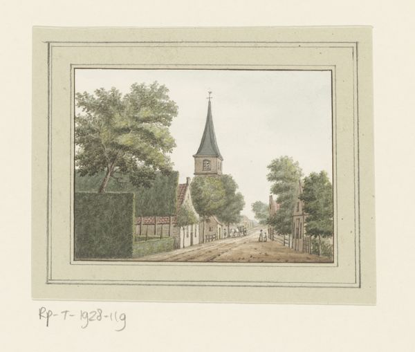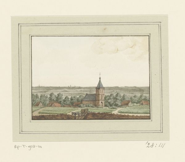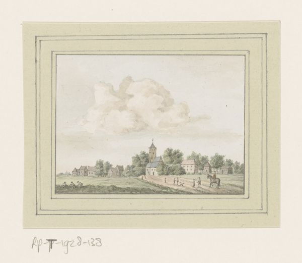 This small drawing shows a view of Hoogwoud village, and was made with pen and brush in gray ink. The most prominent structure in the image is the church, which is a common choice in European village scenes. But note also the windmill; these were essential pieces of infrastructure in the Netherlands. This image is not just of a place, but of a functioning society. Religious institutions, technological innovation, and rural life are combined into a single view. We can ask: who made it and why? Without an artist's name, we can only speculate. Was it a local person documenting their home, or an outsider who found the view picturesque? Research into the history of Hoogwoud and similar Dutch villages can help us to understand the social context that shaped this drawing. Ultimately, this artwork reminds us that art is always a product of its time and place.