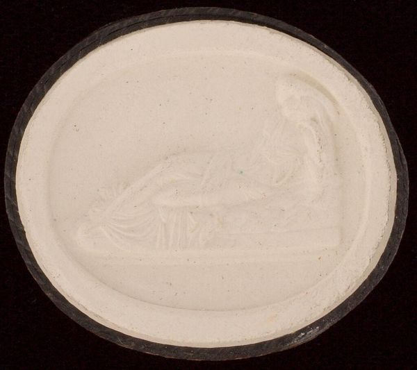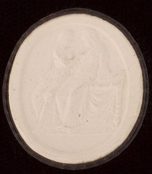 Curator: This exquisite little artwork is entitled "Day, after Thorwaldsen," crafted by Luigi Pichler. Editor: It feels dreamlike, ephemeral. The circular form and pale tones create a sense of floating. It's so small; what's the impact? Curator: Pichler, active in the late 18th and early 19th centuries, was a master gem-cutter. This piece demonstrates the impact of Neoclassical sculpture on contemporary art. The original by Thorwaldsen was a marble relief. Editor: Right, and the shift to this diminutive scale, the altered medium... It's like whispering classical ideals instead of shouting them. What sociopolitical function did it serve? Curator: These miniature artworks were luxury items, often collected by elites demonstrating their refined taste and understanding of classical art. They became symbols of status. Editor: So, in effect, these artworks were a signifier of participation in a very exclusive cultural conversation. Its impact lies in how it was circulated. Curator: Indeed. This tiny work held great symbolic weight. Editor: I hadn't considered miniature sculpture as an expression of power dynamics. It's fascinating how this little artifact illuminates broader cultural trends.