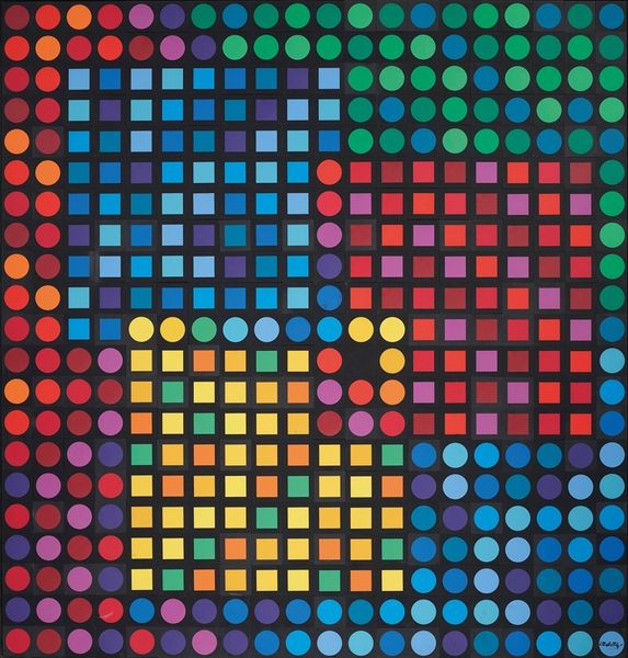 Richter made this painting, 4900 Colours, without any dates listed using a seemingly endless number of colours. What strikes me most is the grid; it’s so systematic, like a well-organized data set, yet bursting with chaotic energy. The surface is an array of small squares, each a different hue. Up close, the texture is smooth, almost like looking at pixels on a screen. It’s fascinating how Richter transforms the physical act of painting into something that resembles digital abstraction. Notice how certain color clusters create mini-vibrations, making the entire piece hum with visual activity. There’s a yellow patch over here that seems to push forward, while a blue area recedes. It’s reminiscent of Sol LeWitt's conceptual rigor, but with a playful, painterly twist. Ultimately, this painting invites us to embrace the ambiguities and multiple interpretations that art offers.