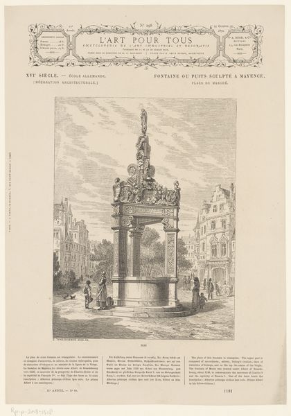Editor: This lithograph, "S'Omer, Strasbourg" by Samuel Prout, completed in 1833, offers a striking cityscape. I’m immediately drawn to the contrast between the dark, looming structure in the foreground and the delicate cathedral rising in the background. What layers of meaning do you find in this work? Curator: Prout’s "S'Omer, Strasbourg" is brimming with cultural memory. Note the fortress-like structure, it evokes a sense of the city's history and resilience through conflict and protection. Then see how the cathedral, bathed in light, represents a spiritual aspiration. Prout seems to have strategically framed the divine and the man-made – doesn’t it give you a sense of the push and pull of power? Editor: Absolutely, I see that interplay. It makes me wonder about the people populating the marketplace; they seem so small and incidental compared to the architecture. Curator: Exactly! The Romantic era was all about the sublime, and Prout uses scale to emphasize humanity's place within a much larger, historically weighted landscape. Consider the choice to portray the figures in such casual stances. Editor: It is as if they’re dwarfed not just by the architecture but by the weight of time itself. Almost frozen in place. Curator: And what about those little flags atop the foreground structure? Consider that visual detail -- a proclamation? A symbol of possession, and a mark on this urban stage? Editor: That’s a fascinating point. The flags contribute to this multi-layered impression; an atmosphere charged with spiritual yearning and an undercurrent of temporal and militaristic force. I initially focused on the formal aspects, but I see how much symbolic weight is packed into this image. Curator: Yes. These images invite us to decipher how cultural identity takes root, in structure, in symbol and, most enduringly, in the collective unconscious.