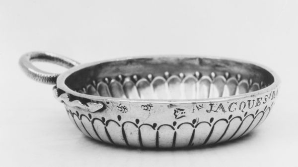 Curator: Welcome. We're looking at an early 19th-century silver tray. Crafted sometime between 1809 and 1819, it's an excellent example of decorative art now housed at the Metropolitan Museum of Art. Editor: My initial impression is one of opulent restraint. The mirrored surface and the silver are inherently showy, but the object's clear, functional form and neoclassical motifs keep it elegant, not gaudy. Curator: Indeed. The repeated frieze featuring griffins and stylized foliage speaks volumes. These elements function symbolically, invoking power and protection. We see the griffin—a hybrid creature combining the eagle and the lion—expressing guardianship, particularly appropriate for a tray that would have presented important objects. Editor: Absolutely. It's important to note the social context. Such a tray would have been used within elite circles. Silverware, especially pieces of this scale, declared economic power. Serving objects on such trays reinforces the relationship between hosts and guests. Curator: The craftsmanship itself is striking. The repoussé work on the rim, juxtaposed against the mirrored base, establishes a rich surface articulation. Also observe the handles terminating in animal heads; these features demonstrate exceptional attention to line and form. The whole piece gains interest through that interplay of textures. Editor: Beyond the artistry, I am intrigued by the question: who made this piece? Recognizing their role in such detailed labor brings new awareness to its historic, social importance. Who did this tray serve, and what can it reveal about the nature of hospitality and social roles in its time? Curator: You are raising pivotal issues, and that social discourse expands and deepens my formal analysis. The object is not merely about craft but human interaction. Editor: Precisely. I think both perspectives amplify one's insight into this period object. Curator: Indeed, by looking at craft and questioning the object, the tray gives us cause for wider reflections.