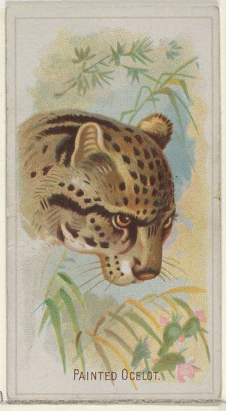 Editor: This is "Monkey, from the Wild Animals of the World series" created in 1888 by Allen & Ginter. It's a print, seemingly using watercolor techniques. There's something about the gaze in this profile view – almost contemplative, but also maybe a little sad. What do you see in this piece? Curator: You know, I find it strangely endearing, this little simian fellow. He reminds me of old tintypes of dignified gentlemen, captured in their Sunday best. There's a solemnity to him, isn't there? But look closer— it's part of a series made to be included in cigarette packs, meant for a fleeting amusement! Isn't that wild? How these little mass-produced prints aimed to evoke curiosity and bring the exotic "Wild Animals of the World" to everyday people... It feels almost like a collision of worlds, wouldn't you say? Editor: A collision of worlds, yes, precisely! The ukiyo-e style they adopted here is very unexpected. What was Allen & Ginter thinking? Curator: Ah, that's the genius! They weren't just selling tobacco; they were selling dreams, fantasies of adventure and far-off lands. By tapping into the popular "Japan craze" with ukiyo-e, they elevate these ephemeral objects and add a touch of artistry to an everyday vice. Think of it: someone enjoying their smoke, and contemplating a miniature work of art. How odd! It is a lovely little picture and I do appreciate its place in popular culture. What are your thoughts now? Editor: That does reframe it. Seeing it as a calculated commercial effort and a work of art… I get a bigger picture. Thanks! Curator: Absolutely! Every little artifact has stories hiding inside, waiting for us to see them anew!