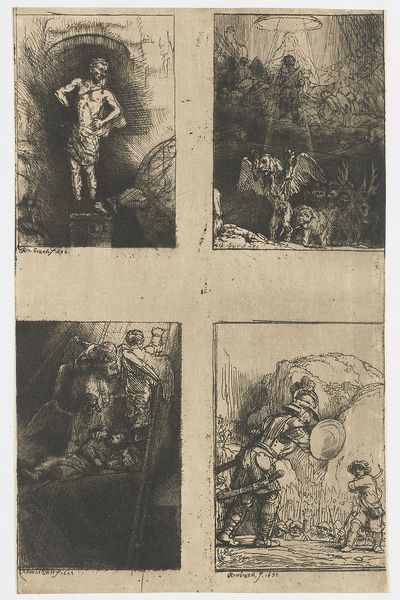 These two illustrations to Menasseh Ben Israel's ‘Piedra Gloriosa’ were etched by Rembrandt van Rijn in 1655. Rembrandt lived during a time of significant cultural exchange and religious contemplation in the Dutch Republic. These etchings vividly capture scenes from the biblical Book of Daniel. The image on the left depicts Nebuchadnezzar’s dream of a statue made of different materials, symbolizing successive kingdoms, while the second image shows Daniel's vision of four beasts, each representing a kingdom, emerging from the sea. Rembrandt masterfully uses light and shadow to create an emotional intensity, inviting viewers to contemplate the transient nature of power and the divine forces at play. Rembrandt was interested in narratives that explored power, faith, and the human condition. The etchings invite us to consider themes of identity, belief, and the interpretation of prophecies. These illustrations serve as potent reminders of the enduring human quest for meaning and understanding in the face of life's uncertainties.