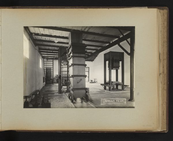 This photograph from 1934 depicts the interior of the Kertamanah tea factory, built by the Braat Soerabaia machine factory. It offers a glimpse into the industrial landscape of the Dutch East Indies, now Indonesia. The image creates meaning through its stark portrayal of modern industrial architecture and the factory's spatial organization. In the early 20th century, Indonesia was under Dutch colonial rule, which heavily influenced its economic structures. Tea plantations were a significant part of this colonial economy, managed and owned by Dutch companies, while the local population worked as laborers. This image, taken in the context of the colonial system, raises questions about labor, resources, and colonial power. The historian would use archival documents, trade reports, and company records to interpret the social and economic conditions that influenced the Dutch East Indies. The artwork also provides a window into the broader history of institutional power, making us think about the legacies of colonial rule.