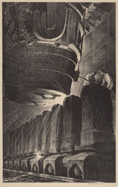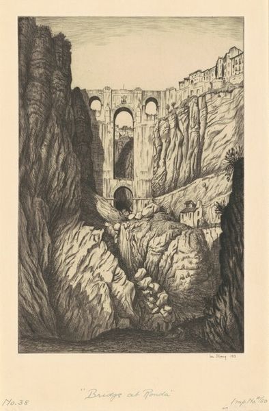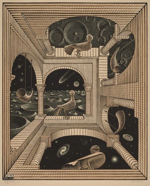 This is ‘Bridge’, a black ink on paper artwork made by Gan Kolski. Immediately, your eye is drawn to the striking contrast between light and shadow, a characteristic of the medium itself. The bridge is the focal point, its arch framing a stylized landscape. The texture of the bridge contrasts with the smooth sky, creating a dynamic visual experience. Kolski uses the structure of the bridge to create a visual metaphor. The bridge is a symbol of connection, yet in this image it isolates. The dark, imposing structure dwarfs the landscape, challenging our perception of space and perspective. The clouds and the shape of the bridge are reflected in the water creating an almost mirror image of the upper portion of the artwork. The bridge acts as a semiotic marker, a signifier of modernity but also perhaps of alienation. It challenges fixed meanings. Art does not have a singular meaning, and it is a site of ongoing interpretation.
