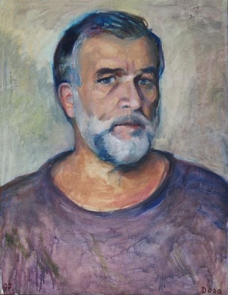 Editor: We're looking at "Portrait of A.D. Scott, 1969" by Barrington Watson, an oil painting. The muted color palette gives the portrait a sense of gravity and introspection. What do you see in this piece? Curator: Well, beyond the surface, portraits always act as vessels for societal projection. Think about the symbolic weight carried within the sitter's gaze. Consider A.D. Scott's direct and unflinching stare. Does it convey defiance, or perhaps weariness? What narratives might his very particular goatee conjure for the viewer, either then or now? Editor: I hadn’t thought about the goatee! It's such a distinct feature. So, you are suggesting we should think about what these very small details would communicate. Curator: Exactly. How does a detail like that encode aspects of identity and belonging? Watson’s use of realism in this portrait needs some unpacking too, as we might consider how realism and its tropes were used to depict Black subjects during the time and whether that has changed at all since this painting. Editor: It sounds like even within the traditions of realism, the image engages broader themes and meanings related to the individual. Curator: Precisely. Visual symbols resonate across time, shaped by history. Looking at this painting opens up space to consider continuities of experience. Editor: I am starting to consider all the layers we miss just from one look! I appreciate this deeper look. Curator: And I hope more viewers are aware that there are cultural memories within portraiture.