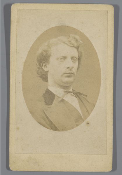 This portrait of an unknown man, captured through the emerging technology of photography, presents us with a figure adorned with symbols of his time. The dark suit and the meticulously arranged cravat speak of a burgeoning era of industrial and social revolution. Note the watch chain, a symbol of modernity and precision, yet also reminiscent of ancient talismans, marking the passage of time and, perhaps, warding off the unknown. Consider the gesture, a subtle manifestation of the 'pathos formula', reminiscent of ancient Roman portraiture. The slight turn of the head and the gaze directed at the viewer is a convention used across centuries. It re-emerges to convey intelligence, self-assurance, but also a hint of vulnerability, a universal representation of human character across time. This recurring formula shows a perpetual subconscious desire to connect with the viewer. The man's slightly reddened cheeks suggest vibrancy and life, inviting us to delve into his story, a tale now lost but eternally preserved in this single, silent image.