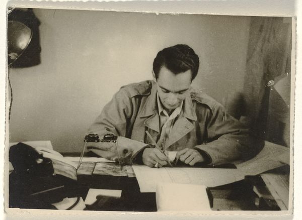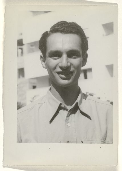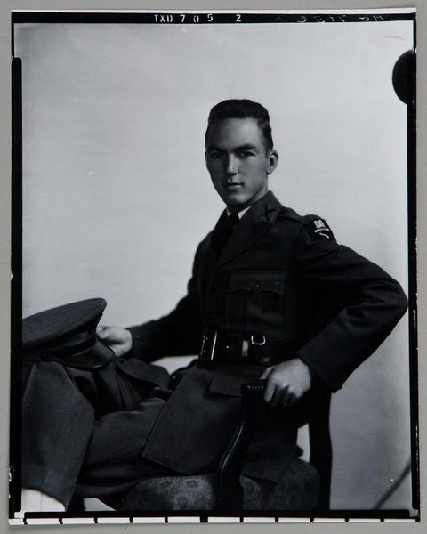 This is a black and white photograph of Karl-Heinz Arndtheim, Isabel Wachenheimer's second husband, in military uniform, made by an unknown artist at an unknown date. It seems like this image was taken in Germany. This small photographic print offers insight into the social and personal disruptions of war, showing a man in uniform, perhaps during or shortly after World War II. The formal composition, reminiscent of official portraits, contrasts with the stark reality of wartime experience. Photographs like this one become valuable historical documents, preserving individual stories within broader socio-political events. Further investigation into German military uniforms and the Wachenheimer family history would shed more light on the subject's identity, military role, and socio-economic background. By exploring archives, personal documents, and historical records, we can uncover the narratives embedded in this image and gain a deeper understanding of its historical context.