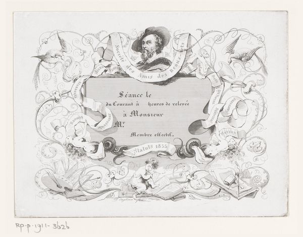 This is a 1795 medallion by Poisson, etched to commemorate the alliance between the French and Batavian Republics. The design is structured around a central inscription, flanked by two circular vignettes. On the left, we see allegorical figures representing the two republics uniting amidst symbols of liberty and progress. On the right, a celebratory scene unfolds, likely depicting the signing of the alliance. The monochrome etching emphasizes line and detail, creating a sense of classical formality. Poisson employs the visual language of revolutionary ideology, with symbols like the Phrygian cap and the scales of justice. The balanced composition, divided into distinct yet connected spaces, suggests a structured and harmonious relationship between the two republics. The linear precision and symmetry contribute to a sense of order and reason, reflecting the Enlightenment ideals that underpinned the revolutionary movements of the time. This medallion serves not just as a historical record, but as a carefully constructed statement about political ideology and national identity.
