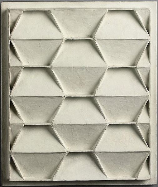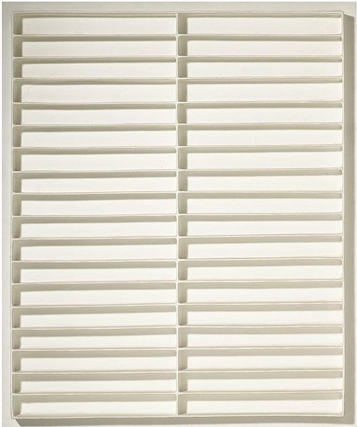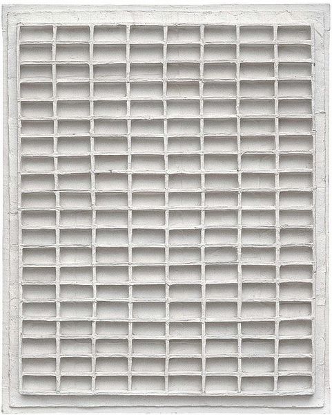 Johannes Jan Schoonhoven made this ‘Relief’ with paint, though it’s hard to know exactly when. It’s a field of white rectangles set in a grid formation, a kind of meditation on form and light. Up close, the surface reveals so much more than just white. It’s a geography of subtle variations, shadows, and textures. The paint seems thick, almost sculptural, catching the light in different ways, creating a play of depth and dimension. There's something almost architectural about the individual rectangles, like tiny rooms or windows, each holding its own quiet space. This focus on seriality and subtle variation, the kind of thing you also see in the work of Agnes Martin, is not about perfection, but about the beauty of the handmade. Each rectangle is slightly different, with its own unique character, and it’s in these imperfections that the work comes alive. It’s a reminder that art is not about flawless execution, but about the process of discovery and the embrace of the unexpected.