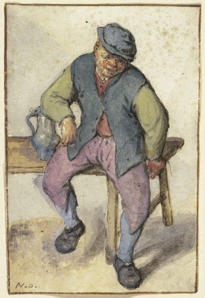 Editor: So, here we have "The Boss Fighter" from around 1888, created by W. Duke, Sons & Co. as a tobacco promotion. It looks like it's made with coloured pencil and printed. I'm immediately struck by its folk-art style. What's your interpretation of the piece? Curator: Well, let's consider what's truly at stake. This isn't "high art" in the traditional sense, is it? It's a commercial print, mass-produced to sell tobacco. That context is key. This image was conceived, drawn, printed, and distributed as part of the marketing arm of industrialised tobacco production. Consider the materials— cheap cardstock, the readily available colored pencils – and their contribution to mass culture. Editor: So, it's less about aesthetic merit and more about the means of production? Curator: Precisely. How does the print medium itself shape the narrative and reach a broader audience? And who are these audiences? Working class men with expendable incomes, that this campaign aims at. Look at the casual bragging in the caption, "I knockt the stuffin' out of Billy." What are the social implications of the tobacco industry using violence to associate and therefore sell this product? Editor: That's a good point. I was focusing on the naive artistic style, but it's also interesting how the materials and distribution directly relate to working-class culture at the time. It almost glamorizes physical work and competition... Curator: "Almost" isn't enough. Does the glamorisation then help people consume more, because they relate to this print, and aspire towards it? That said, understanding that gives it new depth. Thank you for bringing this print to light. Editor: And I learned how the creation and distribution of art for consumption shapes its cultural meaning! Thanks!