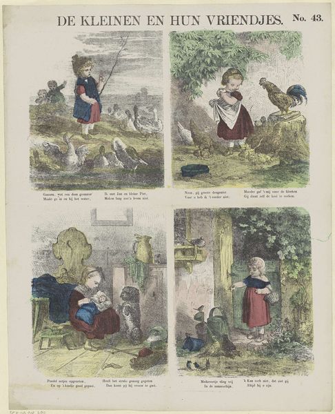 This print, titled ´T landleven, presents an idealised vision of rural life, created by De Ruyter & Meijer. It invites us to consider the social values and norms that underpinned Dutch society at the time it was made. The image creates meaning through visual codes that have historical associations with the Netherlands. We see children playing, tending to animals, and interacting with nature, reflecting a sense of harmony between people and the environment. The print may have been influenced by specific features of Dutch culture, such as its agrarian economy, its emphasis on family values, and its Protestant work ethic. The scenes are conservative in that they reproduce traditional ideas about the family, and how people should relate to the land. By studying sources, we can better understand how the Dutch understood themselves. This print thus opens a window into the social and institutional contexts that shaped artistic production and reception in the Netherlands.