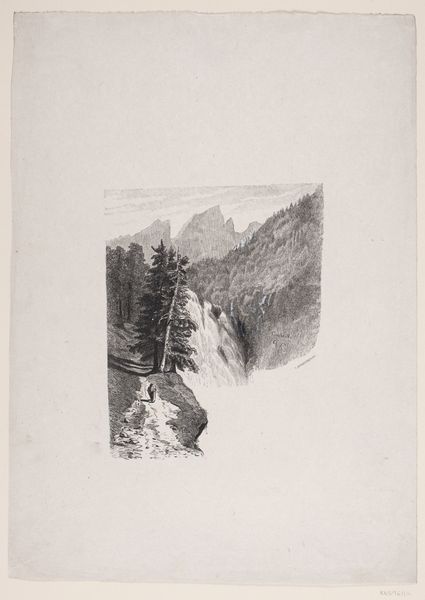 Curator: My goodness, look at this dreamy thing. Editor: Here we have "Udsigt over Glishorn", a landscape drawing executed in pencil by J.L. Lund around 1801, presently held in the collection of the SMK. Its style connects quite strongly to the tenets of Romanticism. Curator: Romantic indeed. All that misty grandeur… I feel like I should be reciting poetry while climbing a very scenic alp. There’s a stark contrast, or maybe harmony is the better word, between the massive mountain rendered with delicate strokes and the dark, textured foliage nestled lower down. Almost makes you feel dwarfed by nature, right? Editor: The formal arrangement supports that interpretation. The eye is directed upwards along a stark diagonal line towards the mountain peak, reinforcing a hierarchical visual relationship. Lund strategically uses line weight and hatching to convey both form and a sense of atmospheric perspective, with detail gradually fading towards the background. Semiotically, the mountain signifies not just physical height but a loftier, more sublime ideal, an essential romantic conceit. Curator: Sublimely put! I think what really grips me, beyond the technical stuff, is its unfinished feeling. You can almost sense Lund, sketching feverishly as if trying to capture a fleeting moment of breathtaking beauty before the clouds shifted. And honestly? He pretty much nailed it. Editor: Its incomplete appearance might be less spontaneous than you imagine; an artist is always in command. However, you are not entirely wrong about your personal intuition on sublimity and the expressionistic use of nature here. Curator: Well, either way, it’s a powerful little peek into a big landscape, seen through the lens of a beautifully captivated artist. Editor: Precisely. The drawing is a meditation on how we perceive the natural world, isn’t it? Its aesthetic beauty, conceptual design, and evocative mood can transport us back in time to witness the dawn of Romanticism through Lund’s skillful lens.