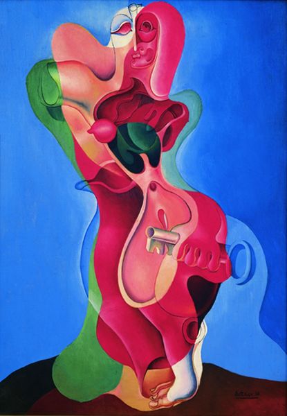 Georgia O'Keeffe painted "Oak Leaves Pink and Grey" during a period when she was creating intimately-scaled paintings of natural forms. Her aesthetic was at odds with the dominant machismo of the art world at the time. O'Keeffe once famously said, "I decided that if I could paint that flower in a huge scale, you could not ignore its beauty." In this vein, the soft, pink hues and smooth gradients of the leaves invite us to look closely at the quiet beauty of the natural world. The magnified perspective encourages the viewer to examine the leaves' forms in detail. O'Keeffe’s sensual and vivid depictions of plant life have often been interpreted through the lens of gender and sexuality. While some critics have insisted on reading her flowers as explicitly feminine or even sexual, O'Keeffe resisted such straightforward interpretations. Here, O'Keeffe offers a celebration of organic shapes and subtle colors, inviting us to pause and appreciate the often-overlooked details of our environment. It presents an opportunity to reflect on our relationship with nature and the complexity of interpreting art through the lenses of identity and representation.