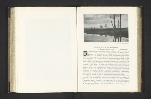 Curator: Here we have "Landschap met landweg en berken," or "Landscape with Country Road and Birches," created by Alfred Schneider between 1902 and 1903. It's a lovely black and white photograph reproduced as a print. Editor: It's starkly beautiful. The strong contrast creates this slightly unsettling, dreamy mood. The road almost vanishes as it curves. Curator: That's an astute observation. The photographic print shows Schneider manipulating light and shadow through a gelatin silver process, quite advanced for the period. We have to remember photography wasn't considered fine art yet by many at the time; the very act of elevating it to print was significant. Editor: Yes, and I notice how he utilizes the birch trees—they reach toward the sky, seemingly guiding our eyes upward, almost like religious icons in an altarpiece. Birch trees have a rich history in European folklore as symbols of cleansing and rebirth. I wonder if Schneider consciously employed that imagery. Curator: That's compelling. The materiality of the photographic process here reveals much about the era. Think about the increasing availability of cameras and the rise of modernist art: there's interplay there of accessible technology and fine art expression that this one small photographic print encapsulates beautifully. The labour of producing photographic materials was intensive. Editor: True. The winding road almost feels like a visual metaphor—the journey through life. Or, more specifically given when it was created, perhaps the growing pains of modernism, leaving the old paths behind but still tied to the land. Curator: Well, this certainly highlights how much we can read from an artist who's name has remained underknown outside the period. This photograph encourages to reassess the social forces at play during photography's ascendancy and modernization of Europe. Editor: And it demonstrates the power of symbolism within even seemingly simple landscape, creating complex emotional undertones within the print. It’s amazing that it’s held its relevance across time and culture.