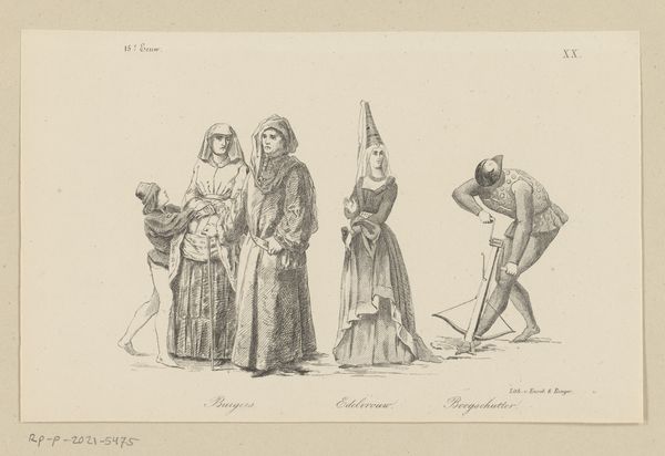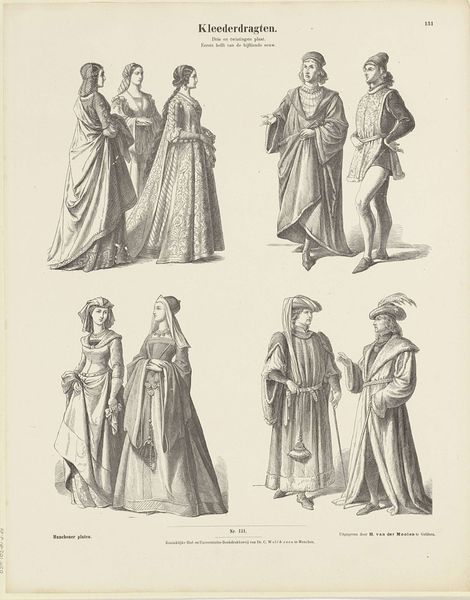This is “Kleederdragten / Vijf en twintigste plaat. / Assyriërs, Mediërs, Egyptenaren. / Uit den tijd vóór Christus,” a historical print by Andreas C. Müller. The print depicts the dress of ancient Assyrians, Medes, and Egyptians. These illustrations not only showcase sartorial styles but also invite us to consider how identity and difference were constructed and communicated in the ancient world. How do garments delineate gender roles or social class? What did it mean to perform one's identity through clothing in these diverse cultures? Historical images like this one have a unique power. They can transport us across time, allowing us to envision distant eras. The visual style of this artwork reflects the sensibilities of its own time, shaping our understanding of the past. As we look, let’s think about the identities and histories embedded in these visual depictions, and how they resonate or clash with our own perceptions.