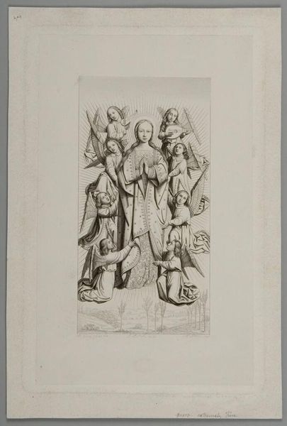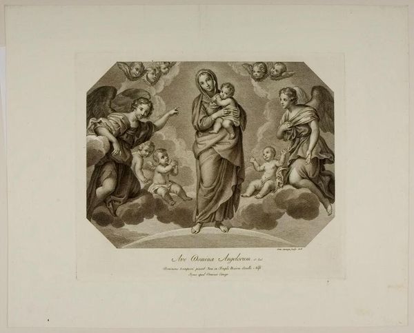 Curator: This is Ignazio Pavon’s “Temptation of Christ,” found here at the Harvard Art Museums. Editor: The scene is surprisingly gentle. The composition feels balanced, almost serene, despite the subject matter. Curator: Consider the historical context. Religious imagery often served didactic purposes, reinforcing societal norms and power structures. This print, while depicting a moment of spiritual conflict, invites contemplation rather than fear. Editor: And the way Pavon renders the figures—the soft drapery, the delicate shading—it's all so carefully constructed to evoke a sense of grace. Curator: It's a fascinating example of how religious narratives get filtered through artistic and cultural lenses, influencing public perception. Editor: Yes, it makes you consider what messages Pavon wanted to convey through his stylistic choices. Curator: Indeed, and it's a testament to the enduring power of art to shape our understanding of history and faith. Editor: A powerful combination of form and cultural context!