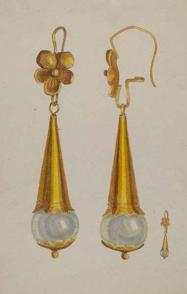 Tulita Westfall rendered these earrings in watercolor and graphite at an unknown date. Aren't they fascinating? Westfall delicately applied color in graded washes across each earring, which gives them a kind of luminous quality. The graphite provides firm outlines and is also used to add texture. Look closely and you'll see, the artist was clearly very interested in the different qualities of light and shade on these objects. The silver earrings, especially, have this wonderful gradient of cool gray tones from top to bottom. You get a real sense of the light catching on the metal. What strikes me most is the way the artist transforms functional objects into something else entirely. It reminds me a little bit of Vija Celmins' meticulous renderings of everyday objects. Both artists prompt us to consider how something shifts between being an object, and being an image. With this work, Westfall invites us into a quiet contemplation about the nature of seeing.