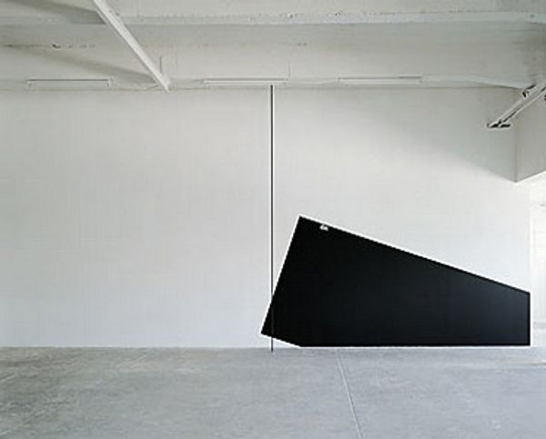 Robert Grosvenor made this "Untitled" sculpture with steel and wood. The first thing that grabs me is the stark contrast, the black against the white. It feels assertive, almost aggressive, like a dark secret hanging in plain sight. It's not trying to blend in or be pretty. It is what it is: raw material, form, and shadow. Look at the surface; can you see the grain of the wood coming through? That texture suggests the artist wasn’t interested in hiding the history of the materials, instead, he allowed the process to show. It reminds me of the work of Blinky Palermo, especially his wall paintings. Both artists are pushing the boundaries of what a painting or sculpture can be, playing with space, form, and our perceptions. There are no easy answers here, only more questions, but that's what keeps art alive, right?