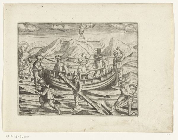 This engraving, made in 1596 by an anonymous Dutch artist, depicts a polar bear attacking sailors near Nova Zembla. The image shows the struggle between man and animal, but it also speaks to the growing Dutch presence in the Arctic, as part of their expanding trade routes. Note the details: the Dutch ships in the background, the sailors' dress, and the depiction of the bear. These elements reflect the cultural attitudes of the time, a mixture of awe and a desire to dominate nature. The celestial display above the ships could be a cultural reference or a superstition from the time. The image also represents the social conditions of the 16th century. As the Dutch Republic grew, the pursuit of trade and resources led to expeditions into uncharted territories. This print offers a glimpse into the risks and rewards of such ventures, reflecting the values and ambitions of a society on the rise. To understand this artwork, we might consult historical records of Dutch exploration and trade, alongside studies of early modern European attitudes toward nature and the wider world. The meaning of this image lies in its historical context.