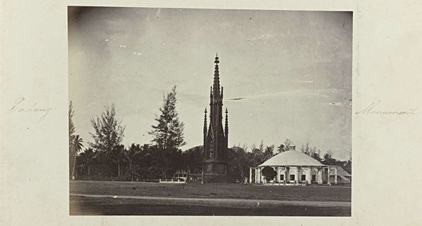 Curator: It’s fascinating, isn’t it? We’re looking at Linnaeus Tripe's albumen print, titled "Rangoon: North Entrance to the Shwe Dagon Pagoda," taken around 1855. Editor: It has this otherworldly quality. Almost dreamlike. The textures created by the trees, foliage, and the wooden fence have a powerful materiality. It looks like a sepia-toned stage set. Curator: Indeed. Tripe, a photographer working for the British East India Company, aimed to document the architecture and landscapes of the region. These images then circulated widely, influencing Western perceptions of Asia. Editor: Interesting to consider these prints in the context of the Company's activities. Were these photographs simply a means of documentation, or also instruments of power and control? How did these visual representations shape colonial narratives and solidify their authority in the region? The labor that went into creating these images is worth exploring. From the preparation of the albumen prints to the logistics of traveling with bulky equipment in challenging conditions, the process itself speaks volumes. Curator: Exactly. Photography during this period played a significant role in shaping the visual culture, influencing how people perceived distant lands. This pagoda, sacred to the Burmese people, became a subject for the colonizer’s gaze, changing the object's relationship with its native audience. Editor: How were these photographs received back in Europe? What impact did they have on artistic trends and broader public understanding of Asian culture? We should examine the cultural baggage they carried and the role of the art institutions in their dissemination and the relationship between artistic intent and how the piece was viewed historically versus how we can see it now. Curator: All good questions to consider. The social and political circumstances in which a piece of art like this are viewed really impact its place and its worth. It is also helpful to consider the value of documentation here—what would history look like for the pagoda or for Myanmar itself without them? Editor: Thinking about the photographer’s effort alongside the impact on viewers and subjects adds depth to how we receive the work today. Curator: I completely agree; it’s all intertwined. Editor: Absolutely. Thanks for unpacking that!
