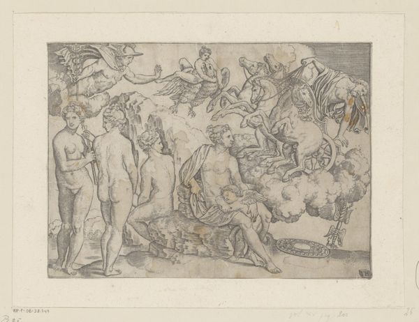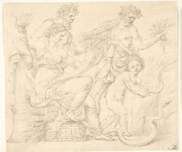 Editor: So this is a 17th-century drawing titled "Fountain with Neptune and Sea Creatures." It’s a sketch, in ink and pencil on toned paper, currently residing here at the Met. I'm immediately struck by the raw energy of the composition, especially the figure of Neptune himself; he's much less idealized than I would have expected. What are your initial thoughts on this piece? Curator: The sketch provides us with a glimpse into the visual culture of the 17th century. Consider, fountains during the Baroque period weren’t simply decorative, they were potent symbols of civic pride and the ruling elite's power to control water, a vital resource. In a society stratified by power, how would this image have been perceived, and who might have consumed it? Editor: That's a great point; I hadn't thought about the social and political implications of something as seemingly benign as a fountain! I guess my view was purely aesthetic. So you're saying this sketch would’ve been more than just art? Curator: Precisely. Its value as an artifact lies in its commentary on how power was projected and consumed. Neptune, a figure from classical mythology, would have immediately communicated wealth, sophistication, and dominion. How does the medium of a sketch affect your perception of that projection? Does it make the statement of authority more, or less, effective? Editor: Hmm, I think the sketch-like quality actually makes it more interesting. It gives a sense of the design process, almost as if we're seeing the birth of a propaganda machine. So this artwork offers not only an artistic creation but also cultural critique? Curator: Indeed. It invites us to investigate how those messages were crafted and consumed, offering a richer understanding of that era. What will you take away from this exploration? Editor: I will remember to consider that art acts not in a vacuum. My readings of any work of art must account for the societal power structures inherent to artistic creation. Thank you!
