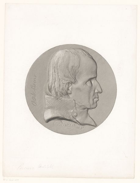 Achille Collas created this portrait of Bertrand Barère using the technique of ‘physionotypie’. The first thing that strikes you is the stark simplicity and the monochrome palette, which invites a close look at the structure. Collas has used a combination of line and shading to model the face and hair. The profile, set within a precisely rendered medallion, echoes classical forms. This almost sculptural quality lends the piece a sense of permanence. But what does it mean to capture a likeness using such a mechanical process? Physionotypie attempted to produce accurate portraits through mechanical means. By employing this technique, Collas engages with debates about art, science and the Enlightenment’s quest for objective representation. Consider the precision of the lines—how they delineate each feature with almost scientific detachment. This precision is not just about capturing a likeness; it reflects a broader cultural desire to categorize and understand the world through empirical observation. The portrait becomes not just an image of an individual, but an emblem of an era grappling with new ways of seeing and knowing.