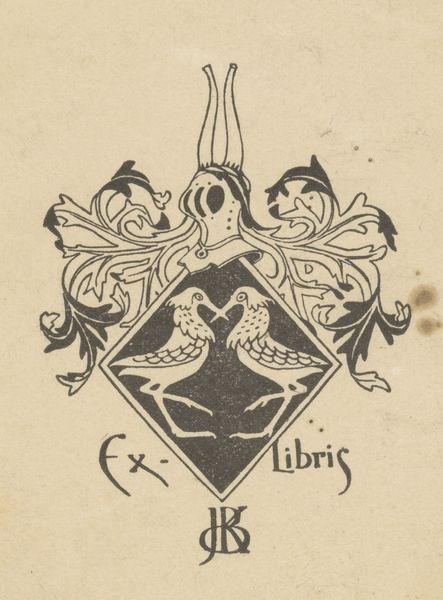 Editor: This is “Verhuisaankondiging van H. Fermin,” a graphic art print from sometime between 1874 and 1935, by Mathieu Lauweriks. It seems like an advertisement or announcement. I’m immediately drawn to the intricate linework and almost medieval feeling. How do you interpret this work, especially with its symbolic elements? Curator: It’s fascinating how Lauweriks, deeply influenced by Art Nouveau, evokes a sense of cultural memory here. Look at the typography, and the framing motifs like the swan and geometric shapes—they’re not just decorative. Consider the swan—it is about transformation, change, transition… a fitting symbol, then, for a relocation announcement, no? What other visual motifs catch your eye? Editor: The dove at the top is pretty prominent, and the leaf-like shapes along the bottom edge. Curator: Yes, precisely. The dove, a universal symbol of peace, could imply a sense of continuity and stability despite the change of location. And the stylized leaves, reminiscent of Art Nouveau’s organic forms, tie the announcement to a sense of growth, don't you think? Fermin’s business isn’t just moving; it's flourishing. It subtly speaks to a deeper emotional resonance with the audience, doesn't it? Editor: So it’s about using symbols to communicate not just information, but also feelings and cultural values tied to this change. Curator: Precisely! And this wasn’t just advertising. Think of the cultural importance of church ornaments—it links this announcement to a wider, communal sphere, rooted in cultural and historical memory. It uses Art Nouveau not just for style, but as a language to speak to those values. Editor: I hadn’t considered the cultural weight of church ornaments or the swan’s association with transformation. Thanks; it adds layers I completely missed. Curator: Exactly! This seemingly simple announcement, therefore, reveals how art can be both functional and deeply symbolic.