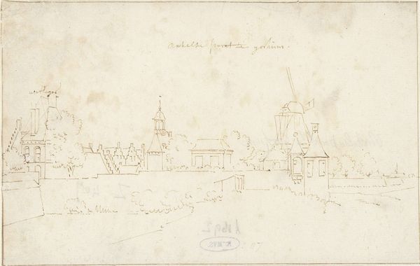 Curator: Before us, we have "Lokhorst oftewel Oud-Teilingen" by Roelant Roghman, a drawing likely created between 1646 and 1650, rendered with pencil and pen. It depicts an architectural view and it is part of the Rijksmuseum collection. Editor: It possesses such a wistful quality, doesn't it? The lightness of the pencil creates a sense of faded memory, as if glimpsed through time itself. Curator: It is more than just capturing a likeness. Roghman came from a family of artists and printmakers and throughout his career he depicted castles and landscapes in the Netherlands and he clearly had a precise goal in representing and recording it. Editor: It's interesting you frame it that way. To me, the crumbling edifice invites a dialogue about power structures. Were these landscapes readily accessible or were they only open to elites? How did this artwork challenge, reinforce or exist outside such social confines? Curator: We know that country estates in that period had significant economic power, with influence over resources and land, as demonstrated in their role in land ownership and labor relations. I think it’s about the power dynamics of place during the Dutch Golden Age. The imagery of these decaying structures speaks volumes, though, hinting at decline and shifting social dynamics. Editor: Precisely! This work becomes part of a wider narrative of change and instability, challenging any nostalgic or purely aesthetic reading. The architectural precision provides an objective ground, while Roghman's aesthetic choices evoke pathos. I consider that dichotomy an intentional juxtaposition to make statements about class, privilege, and historical impermanence. Curator: These drawings give a glimpse into 17th-century Holland, as places of power and leisure but more crucially through the development of new notions of public space. Editor: This perspective shapes my understanding and makes me re-evaluate its place in historical discourse. It also challenges me to recognize these visual cues in our contemporary visual culture.