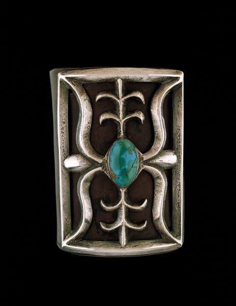 This is P. Heerens’ silver and green glass brooch. It's a small, intimate object, a world in miniature. It reminds me of a painter starting with a base tone and then building up the image, layer by layer. Look at the way the silver swirls around the glass, each curve and indentation carefully shaped. It’s almost like the silver is alive, reaching out to embrace the stone. I love the texture of the silver, the way it catches the light, it feels like the material has a memory, a history of being worked and shaped. The green glass at the heart of the brooch is a deep, swirling pool, like a forest reflected in a still pond. The brooch feels like a talisman, something that holds a secret, a whisper of something ancient and unknown. It reminds me of the work of Frida Kahlo, she too knew how to infuse everyday objects with a deep, personal meaning. It's a conversation across time, a way of seeing and feeling the world that transcends the individual artist.