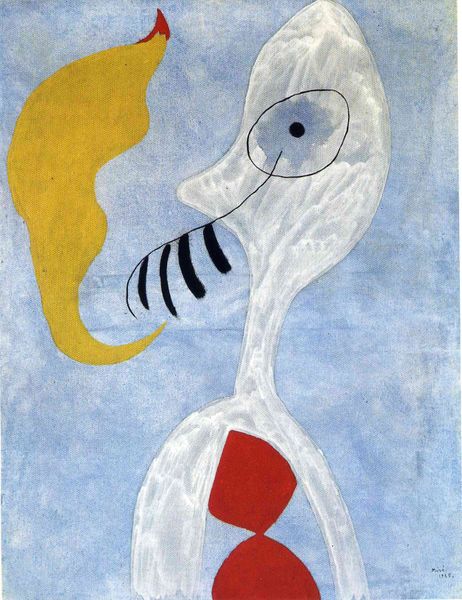 Curator: Let's take a look at Mikuláš Galanda’s “Fire” from 1938, an oil on some sort of supporting board, maybe paperboard. It presents a stylized female figure, quite arresting actually. Editor: My first impression is how unsettling it is! The colors are intense, clashing almost. Is it fire as in passion, or fire as in destruction? The way the figure hides her face suggests vulnerability, yet that stark red skin hints at a potent force barely contained. Curator: I think you are right to focus on the material deployment in relation to the unsettling impact of color. What's so striking here is Galanda's strategic combination of the medium and his expressive handling. The paint is applied very directly with defined edges, giving the figure this powerful, yet somehow manufactured aesthetic. Consider the materials Galanda had to hand and how those might have conditioned what he was trying to express. Editor: That’s interesting because, for me, it evokes broader conversations about female representation at that time. The figure's body is objectified, but there's a rawness too. The drips coming from her breasts evoke vulnerability. Is Galanda commenting on the societal pressures placed on women, their role reduced to fertility and forced passion? Curator: It is worth acknowledging that Galanda's earlier work involved direct folk iconography. Yet he sought to synthesise the symbols available from Slovak culture to create a unique visual language to suit modern demands. I can imagine that the intensity of color must come at a price in the pigmenting process. Editor: And how did this unique modern idiom position itself, within broader art movements and the socio-political ferment bubbling away at that moment? Did the use of 'folkloric' ideas provide symbolic safety or camouflage, to enable critique? I’m also curious about how Galanda considered his audience, as there's nothing comfortable here, or readily soothing. Curator: Considering those questions of comfort and critique helps clarify Galanda’s experimental deployment of a raw artistic idiom. "Fire" embodies a material synthesis shaped by social and political realities. The final arrangement suggests more of a pilot project for some, as-yet unrealised, ambition. Editor: A fiery synthesis, then! A discomforting glimpse of raw, untamed power. Galanda forces us to confront difficult truths about identity, representation, and societal expectations.