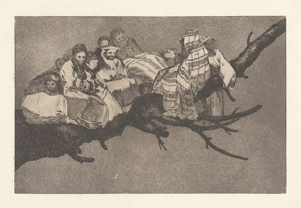 "Fool's Folly" was etched by Francisco de Goya in Spain as part of his "Disparates" series. The series, whose name translates to "Follies," is a set of aquatint prints that explore themes of irrationality and absurdity. The image shows four bulls in a chaotic jumble, their bodies intertwined in a dynamic yet disturbing composition. This print reflects the social and political turmoil of early 19th-century Spain, marked by war, political instability, and social upheaval. Goya was a court painter, but he was also critical of the monarchy. He captures the sense of disorder and the breakdown of reason in society, using the image of the bulls as a metaphor for human folly and the irrational forces driving conflict and violence. Bulls and bullfighting were also a national symbol of Spanish identity. Art historians consult letters, and political documents to find a deeper insight into Goya's work and the complex historical context in which he created it.