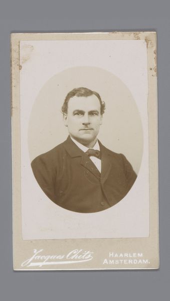 Editor: This is an albumen print dating from somewhere between 1864 and 1891, titled "Portrait of an Unknown Man." It’s striking how such an ordinary object—a photograph—can feel so weighty. I’m curious, what do you see in this piece, especially considering its historical context? Curator: What immediately strikes me is the democratization of portraiture enabled by photography during this period. Before this, portraits were primarily the domain of the wealthy, reinforcing class distinctions. This "Unknown Man," rendered in accessible albumen print, signifies a shift in who gets to be represented and remembered. Editor: That’s fascinating! So, photography isn't just about capturing an image; it’s about challenging existing power structures? Curator: Precisely! The very act of mass-producing images meant that more people, regardless of social standing, could participate in visual culture. We must also consider who controlled the means of production, distribution, and interpretation of these images. Who had the power to represent, and whose stories remained untold? What social narratives did the popularization of photography reinforce, and which ones did it subvert? Editor: That makes me rethink the "Unknown" aspect. It's not just about lacking a name, but potentially about whose stories get erased by dominant narratives, even with increased access to representation. Curator: Indeed. The ‘unknown man’ becomes a fascinating lens through which to examine social mobility and visibility. Consider, too, the conventions of pose and attire – do they signal aspirations to a higher social class, or a deliberate self-presentation? What do you think? Editor: That’s a great question! The man’s attire appears very intentional—he's attempting to assert social presence by portraying a more favorable image. It seems he’s aware of the power a photograph could potentially possess in how he is perceived in society. Curator: Precisely! Reflecting on this image reveals the complexities of art’s public role and how photography shifted visual representation. Editor: It's incredible how a simple portrait can reveal such social depths! Thank you for enlightening me!