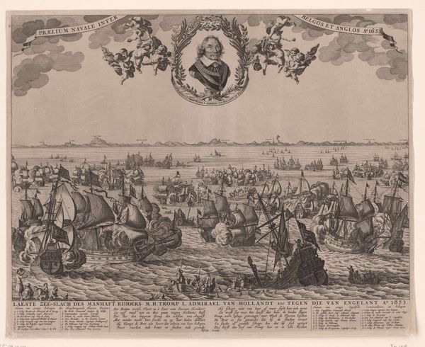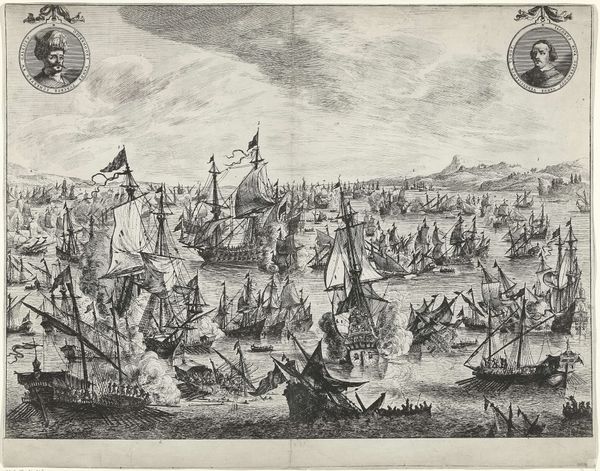 Pieter Hendricksz. Schut created this print of the naval battle between Sweden and Denmark in the Belt in 1644. Imagine the Dutch Republic in the 17th century, a nation wrestling with its identity amidst a sea of European powers. Here, the artist uses the visual language of maritime conflict to speak to broader themes of national pride and geopolitical ambition. The detailed rendering of ships amidst billowing smoke evokes both the glory and the brutality of naval warfare. What does it mean to represent violence with such precision? How does this imagery play into the construction of national identity during a period of intense maritime competition and colonial expansion? The battle itself reflects the ongoing power struggles for control over vital trade routes in the Baltic Sea. But beyond the clash of nations, consider the human element: the sailors, the soldiers, the lives lost or forever changed in the name of kingdom and commerce. It's a scene of organized chaos, where individual fates are subsumed by larger political designs. Schut asks us to reflect on the complex relationship between individual experience and national narrative.
